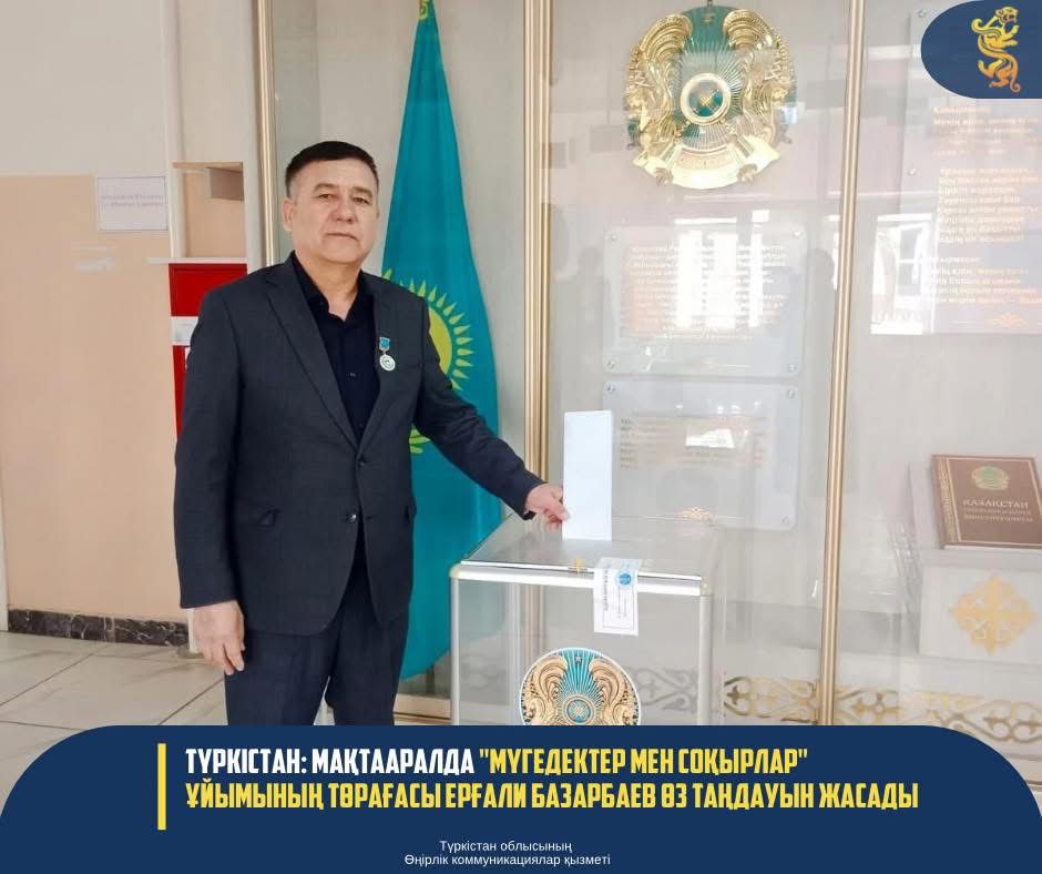 Мақтаарал ауданының орталығы Мырзакент кентінде орналасқан №432 референдум учаскесіне мүмкіндігі шектеулі азаматтар да келіп, өз таңдауларын жасауда. Солардың қатарында аудандық «Мүгедектер мен соқырлар» қоғамдық ұйымының төрағасы Ерғали Базарбаевта бар. Олар мұндай маңызды саяси науқаннан шет қалмай, ел болашағына қатысты шешім қабылдауға қатысу әрбір азаматтың азаматтық парызы екенін атап өтті.