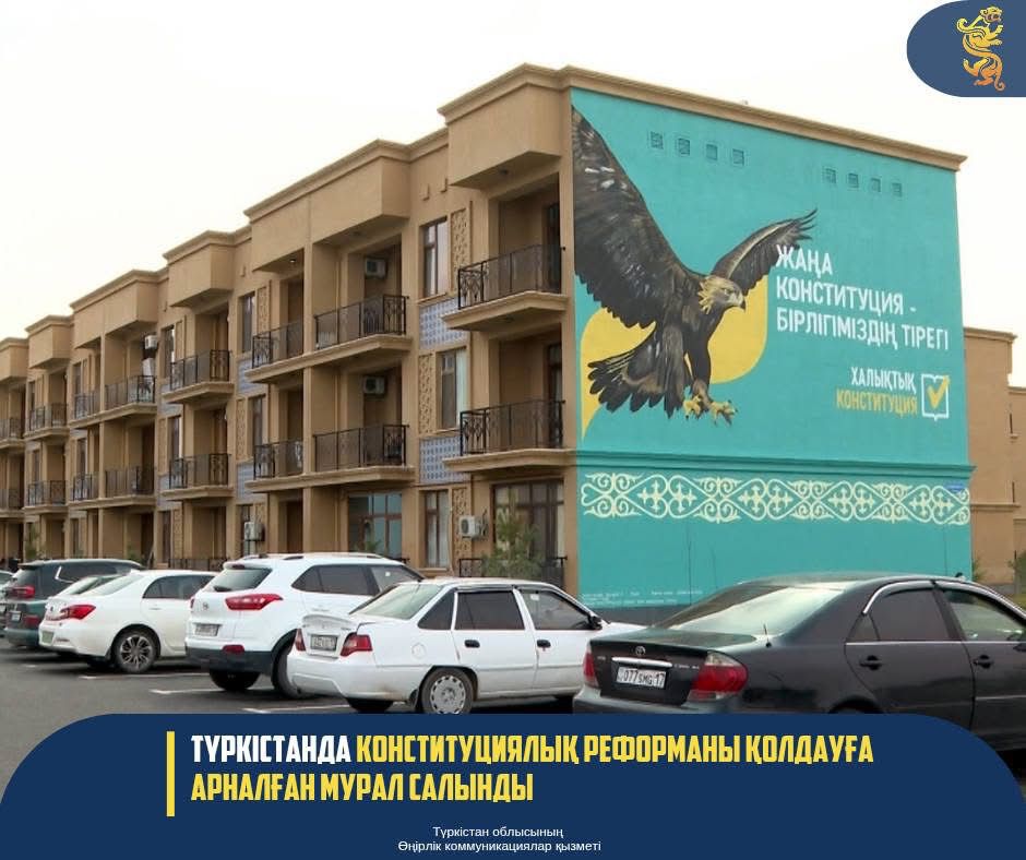 Түркістан қаласындағы Керуен сарай кешені аумағындағы тұрғын үйдің қасбетіне Конституцияға арналған мурал салынды. Түркістан қаласында жүзеге асқан бұл игі іс — Конституциялық реформаны қолдауға бағытталған.