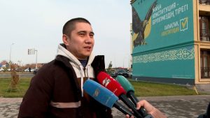 Муралдың ашылуына орай түркістандық жастар арнайы флешмоб ұйымдастырды.
