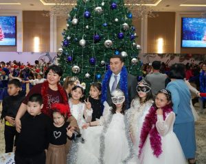 Мерекелік іс-шара аниматорлар, қуыршақ кейіпкерлері мен өнерпаздардың балаларды қарсы алуымен басталып, залда қатысушы балалар жаңа жылдық шыршаны айнала қоршап, мерекелік атмосфераға бөленді. Іс-шара барысында театрландырылған қойылым көрсетіліп, балаларға ерекше әсер сыйлады.