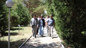 Алдымен Президент кеңесшісі университет жанындағы Ботаникалық бақты аралап, ғылыми құрылым жетекшілері мен бақ қызметкерлерімен пікір алмасты. Университеттің ректор өкілі міндетін атқарушы Нажи Генч атқарылып жатқан жұмыстарды баяндады. Жер көлемі 88 гектар аумақты құрайды. Мұнда 127-ден астам өсімдік түрі бапталады. Сондай-ақ өңір климатына бейімделген коллекция қалыптасқан. Сирек кездесетін ағаш-бұталар мен дәрілік өсімдіктердің биологиялық ерекшеліктері зерттеліп, интродукциялық және экологиялық бағытта ғылыми ізденістер жүргізіледі.